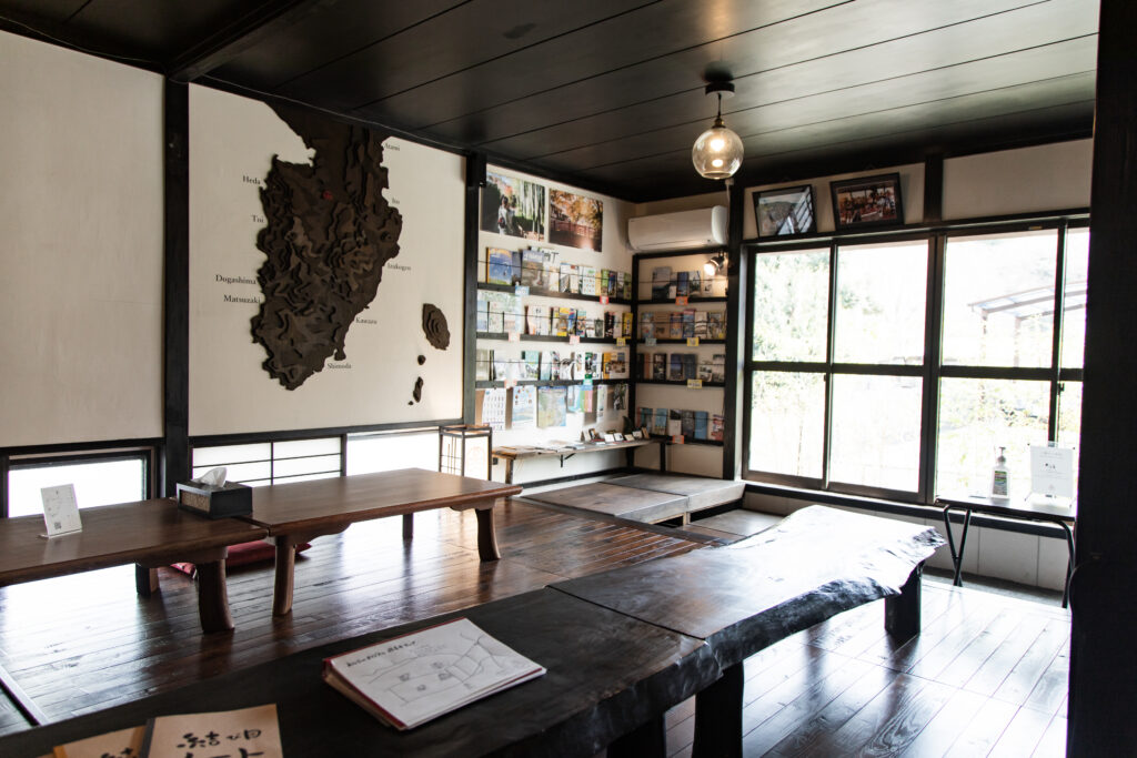 A roughly 14-tatami mat space filled with sightseeing information about Shuzenji Onsen and the entire Izu Peninsula. A quiet area where you can comfortably ask our staff for recommendations, such as dinner spots or ideal places for trekking. The scale model of the Izu Peninsula is especially helpful when planning your itinerary.