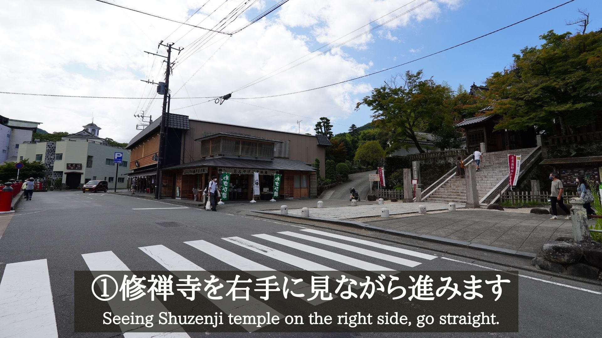 From “Shuzenji I.C”, see Shuzenji Temple on your right via prefectural road 18