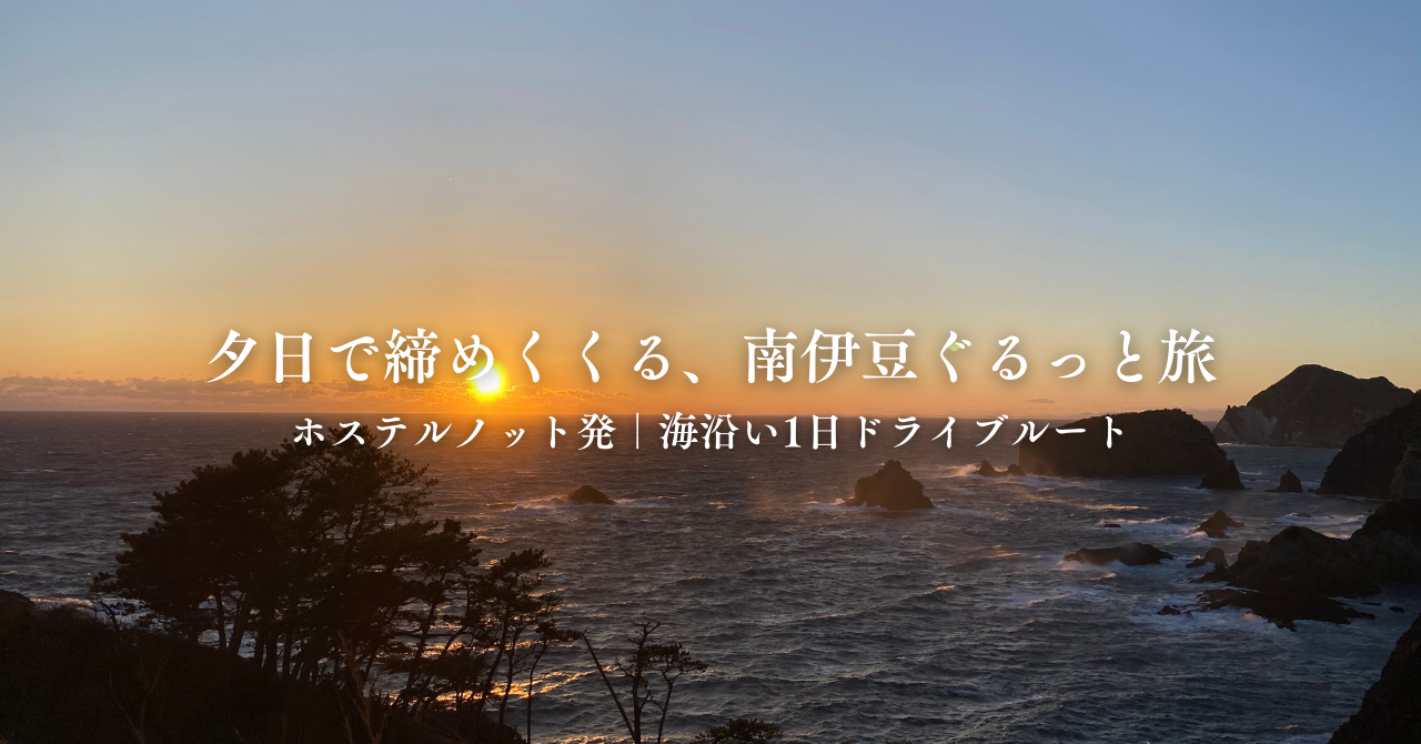 夏の伊豆を1日で満喫する車旅コース。ホステルノットから出発し、河津・下田・南伊豆の海や絶景をぐるっと巡るモデルルートを紹介。あいあい岬の夕日で締める感動のドライブ旅は、ひとり旅にもぴったり。 … Read More